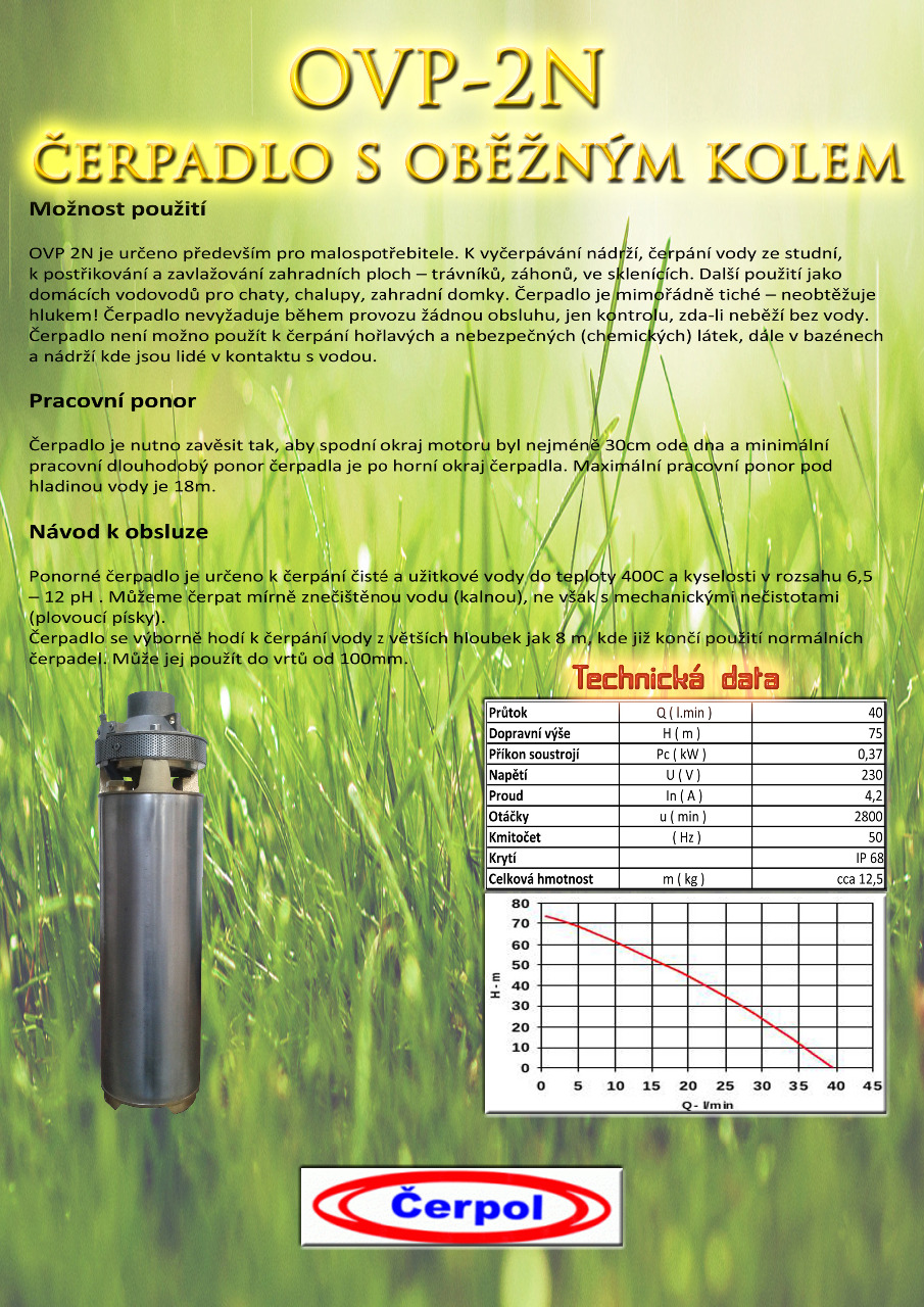 OVP-2N ( 230V ) - čerpadlo do studní a vrtů s oběžným kolem - min. ø 100mm